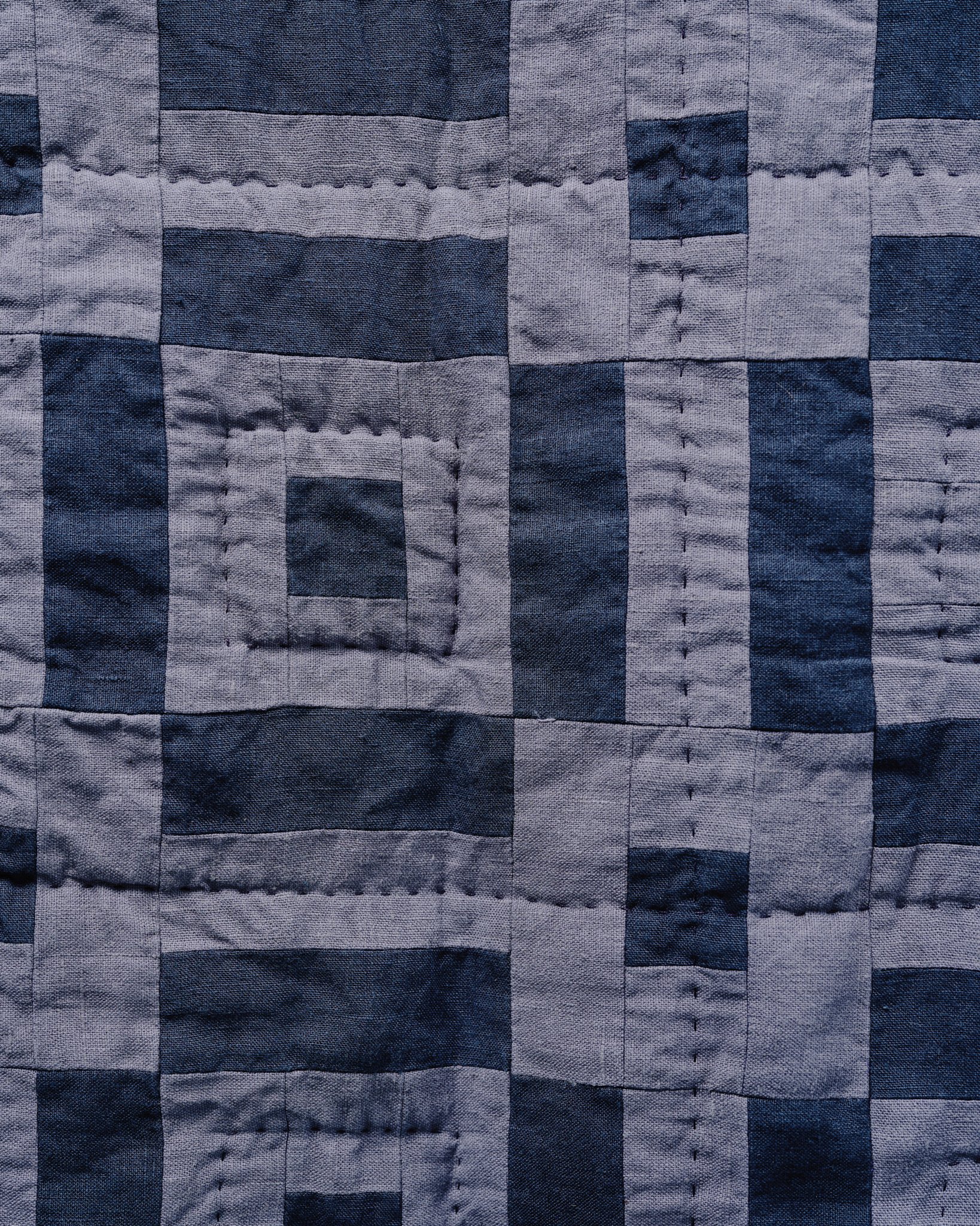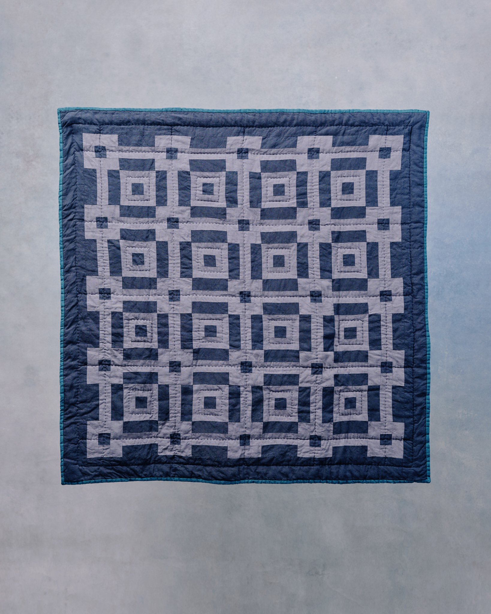 Navy and blue tile pattern. Made with OEKO-TEX certified European linen with wool batting for good comfort and squish, backed with matching navy linen.