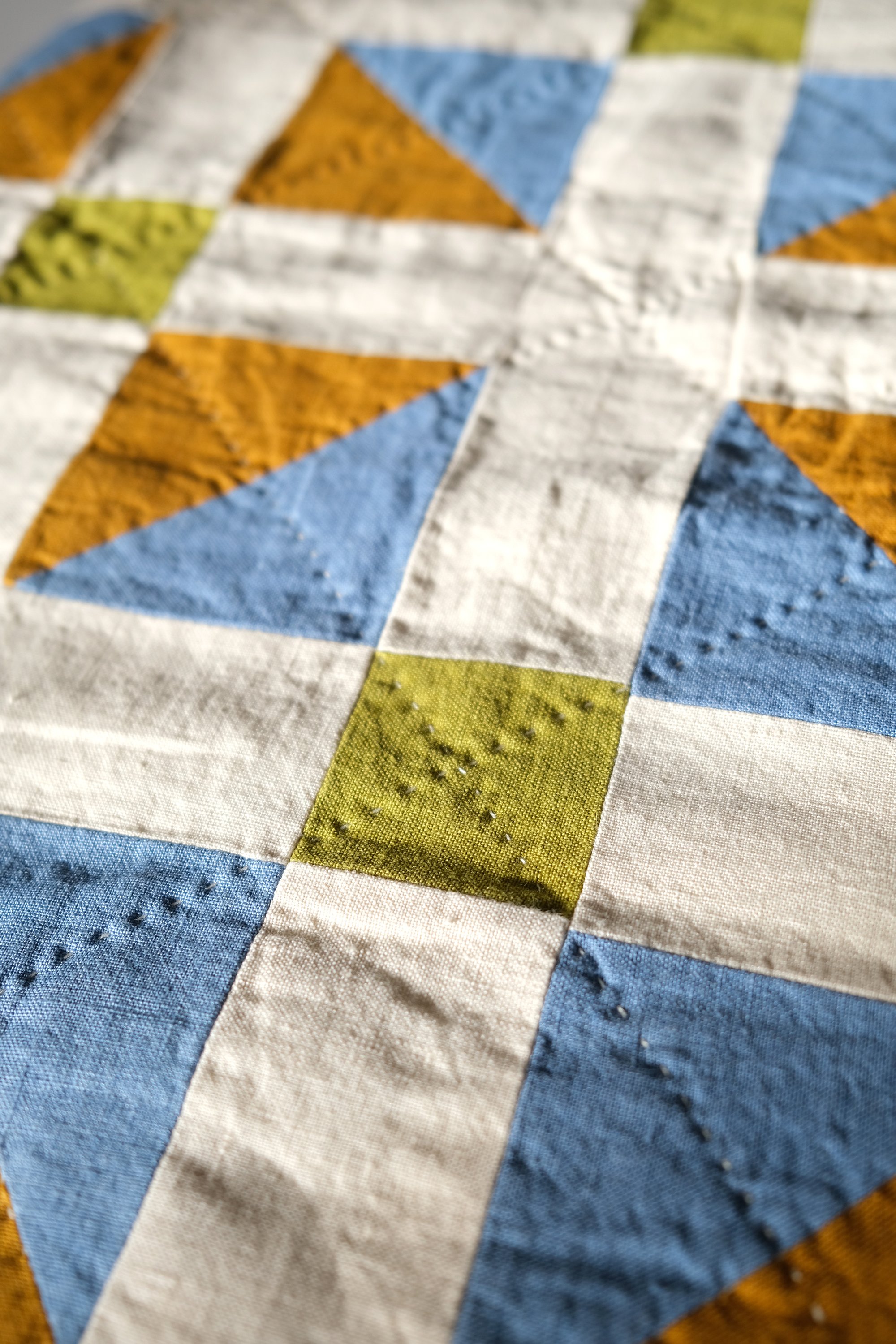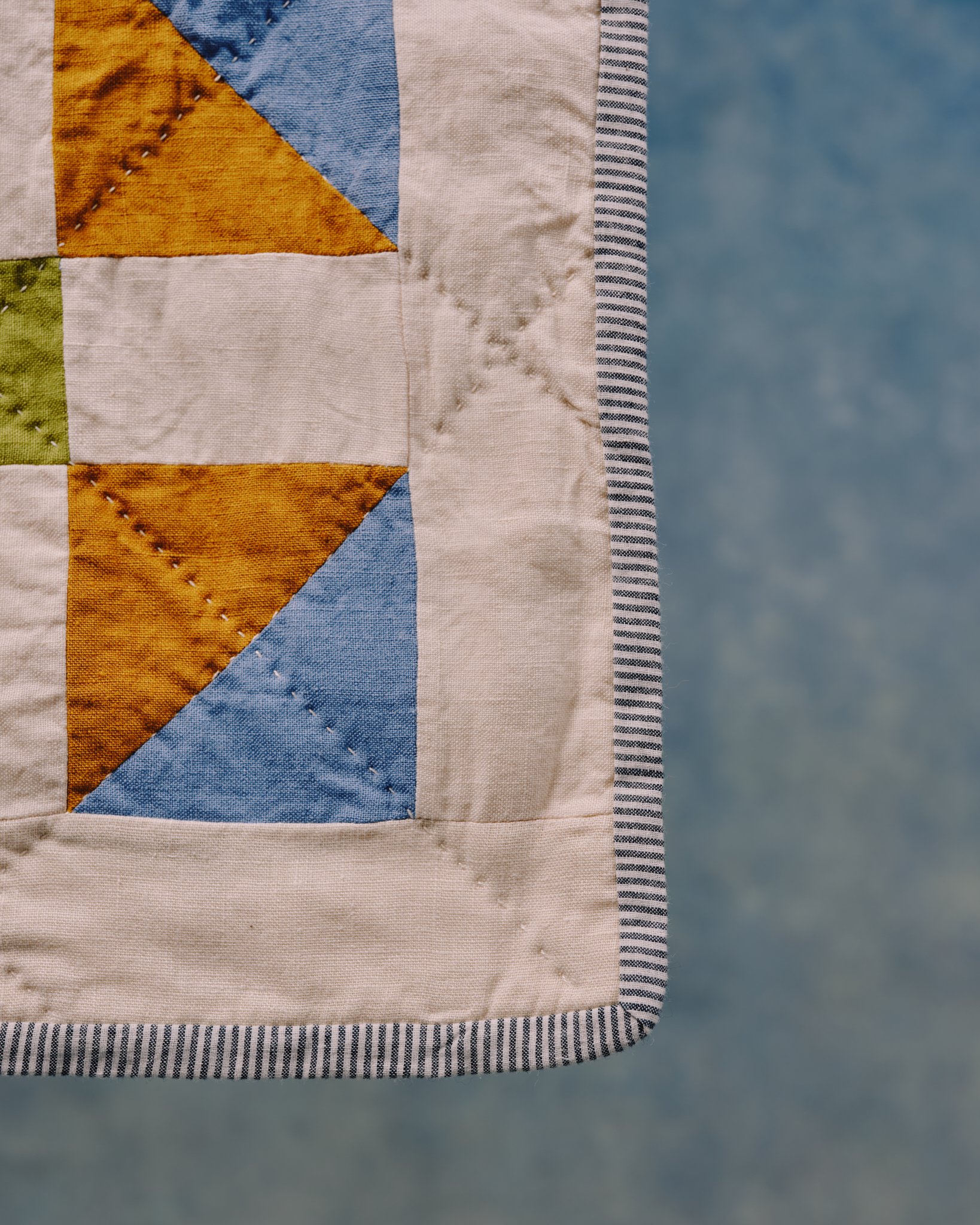 Machine pieced European linen, hand quilted with a breathable cotton/bamboo mix wadding and backed with soft and light hand woven cotton.
