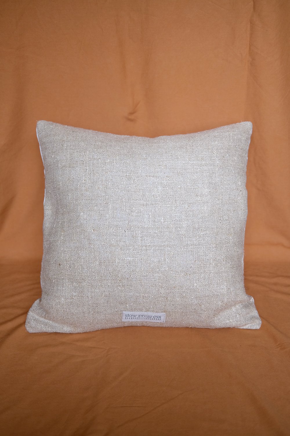 Made with OEKO-TEX certified European linen, sandwiched with a layer of cotton/bamboo mix batting and organic cotton calico for a luxurious and hard-wearing finish. Backed with a raw, unprocessed linen with a beautiful natural texture. Finished with a concealed zip and hand-printed brand label.