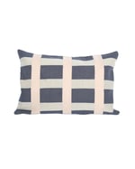 A patchwork cushion with a linear pattern design inspired by the simple, clean lines of Modernist architecture.