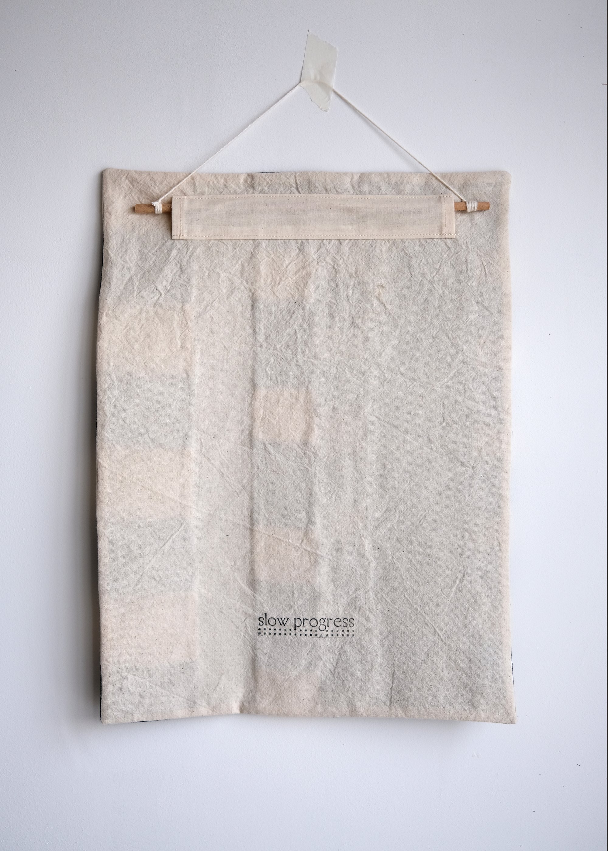 A small wall hanging made with a mix of cotton and linen offcuts.